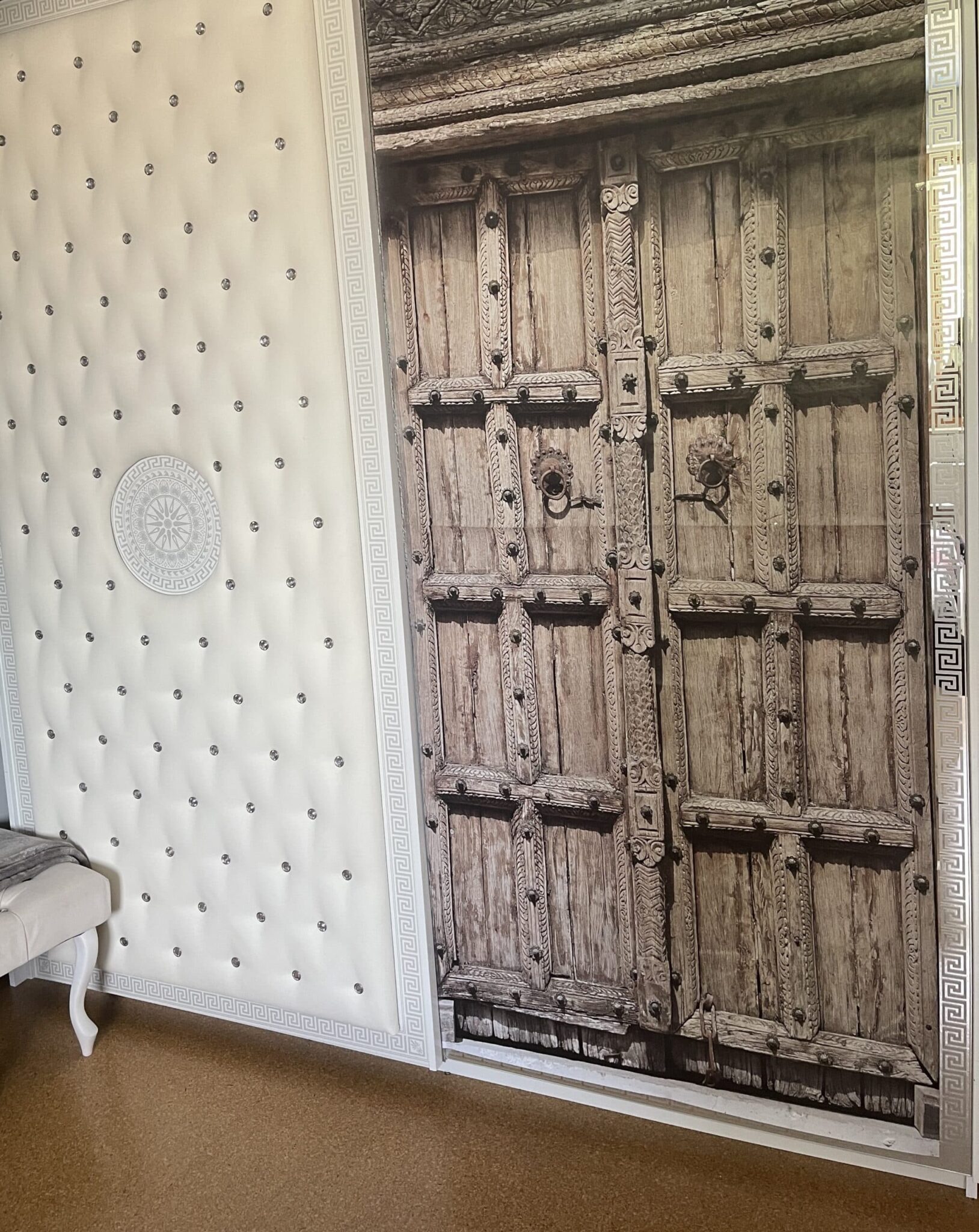 Zum Verkauf steht hier eine wunderschöne, zeitlose murimage Türtapete - Model "Schlosstor rustikal".