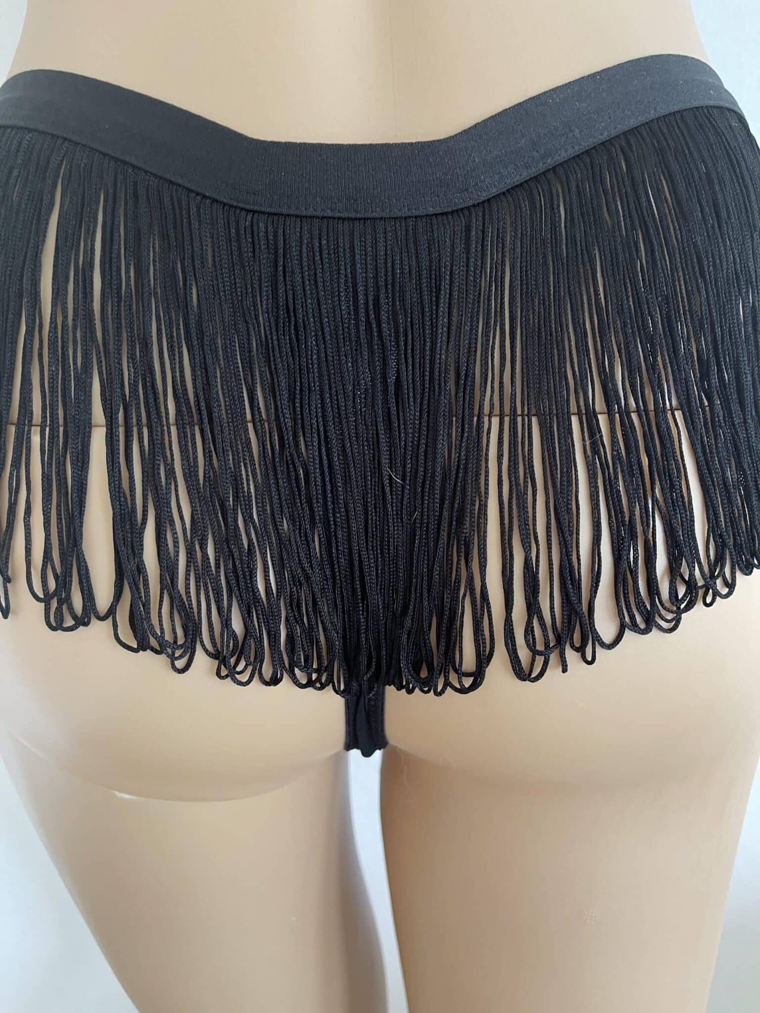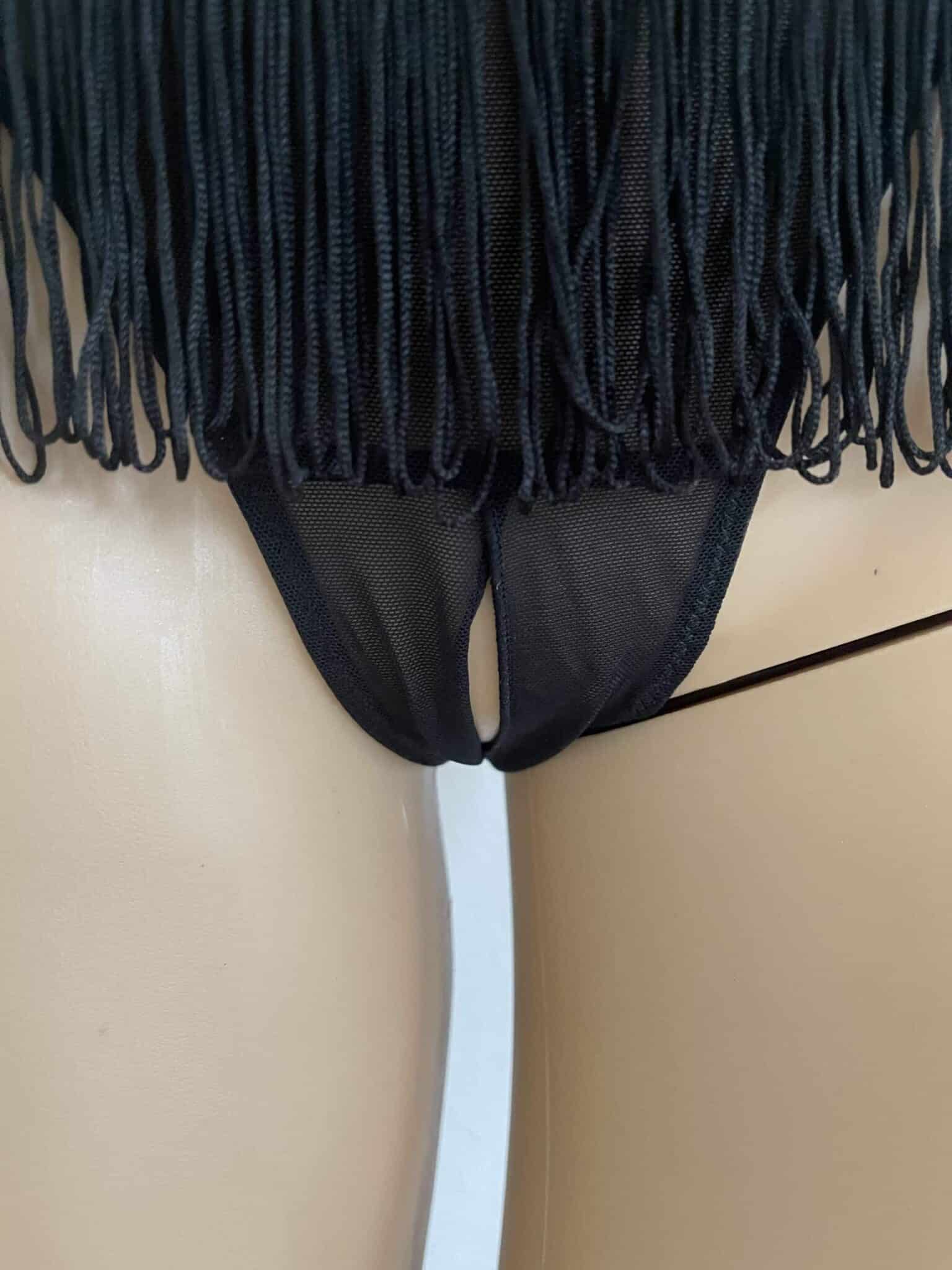Komplett aus transparentem Netzmaterial legt sich der String ouvert von PETITE FLEUR GOLD sanft auf die Haut während die rundum Fransen für eine verspielt-freche Optik sorgen.