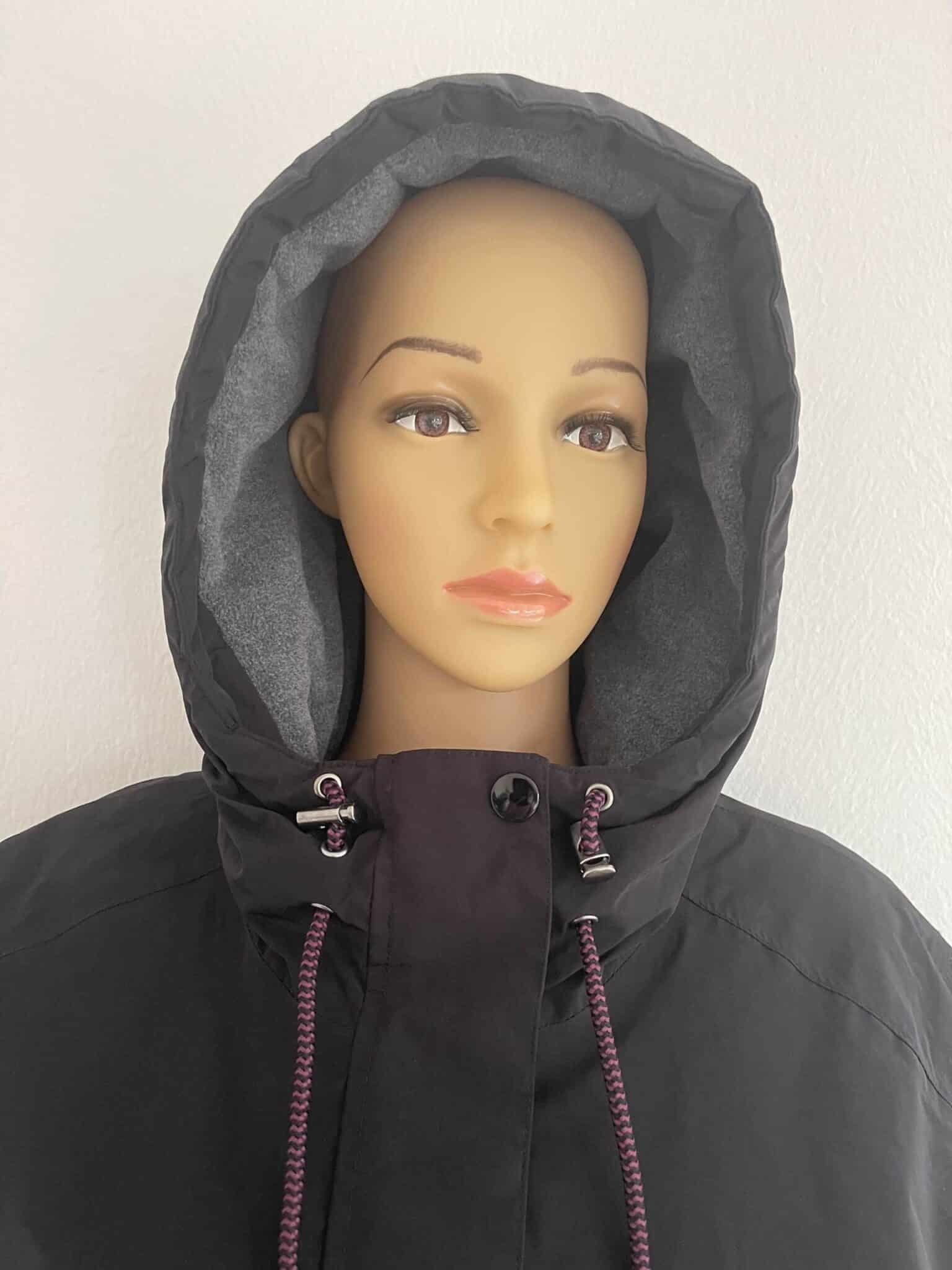 De binnenkant van de parka heeft een knusse fleece voering op de borst, rug en capuchon.