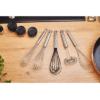 Der Rührbesen ist in der Küche unentbehrlich. Bei RÖSLE gibt es diesen Küchenhelfer in eleganter, langlebiger Edelstahl-Silikon-Ausführung. Beste Ergebnisse beim Kochen könnten nicht einfacher sein: Der schmale Griff sorgt in Kombination mit dem großen Abstand der feinen Drähte für verringerten Kraftaufwand bei der Zubereitung flüssiger oder halbfester Speisen. Ob zur Zubereitung eines Schokoladendesserts, einer Kartoffelsuppe oder einer feinen Sauce - dieser clever konzipierte Schneebesen von RÖSLE ist stets ein zuverlässiger Helfer, der zum Gelingen von Speisen mit flüssiger und halbfester Konsistenz einen wesentlichen Beitrag leistet. Durch die Silikonschlaufen wird ein Verkratzen von Antihaftbeschichtungen verhindert ohne dabei an Funktion einzubüßen.