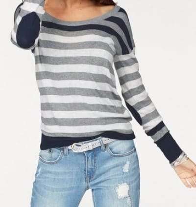 Ten sweter w paski od AJC jest wykonany z lekkiej, cienkiej dzianiny, idealnej na chłodne letnie dni i ma wiele do zaoferowania.