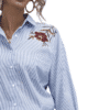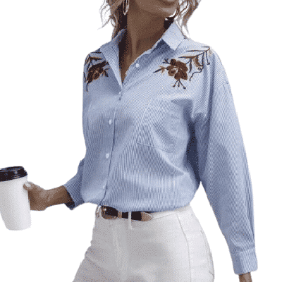 Detale: haft, wysoki stan, kieszenie, guziki z przodu