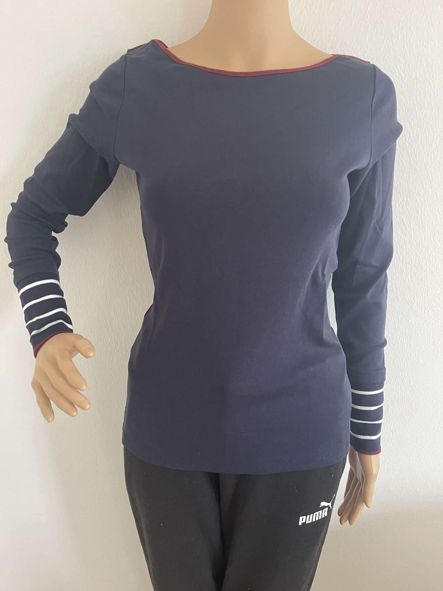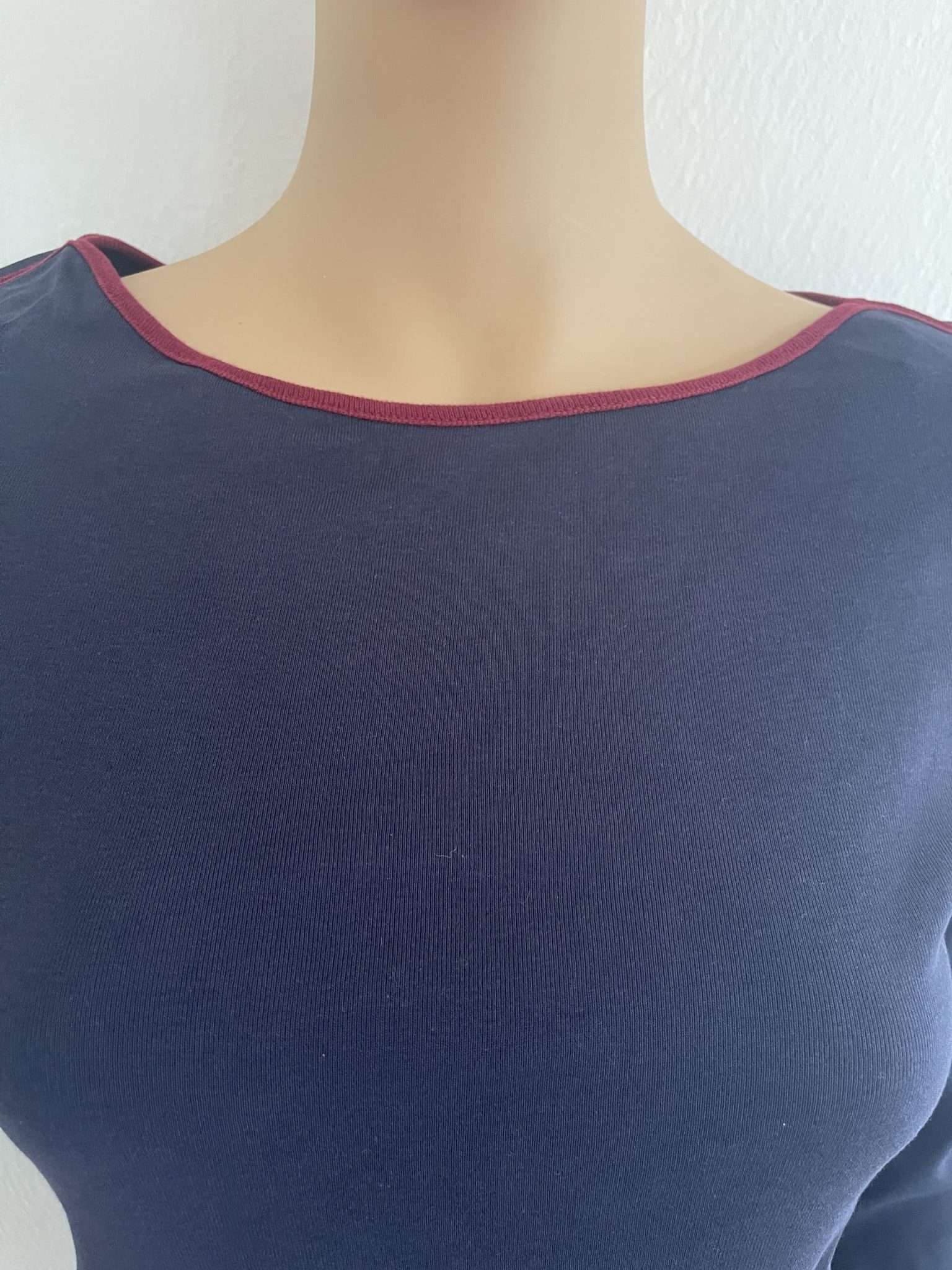 Weicher Jersey aus reiner Bio-Baumwolle Organic Cotton: Baumwolle aus kontrolliert biologischem Anbau, ein U-Boot-Ausschnitt mit farblich abgesetzter Blende und Overlap-Effekt an den Schultern und ein körperbetonter Schnitt zeichnen dieses hübsche Shirt im Marine-Look aus.