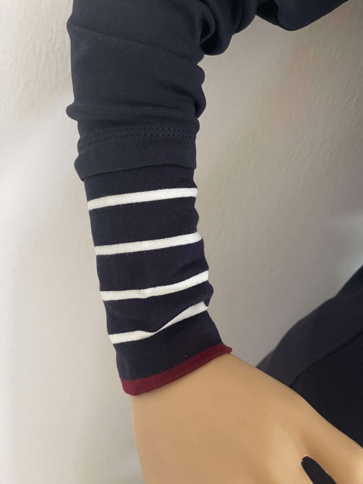 Die langen Ärmelbündchen im Streifendesign und ein kontrastfarbener U-Boot-Ausschnitt machen dieses Longsleeve aus 100% Organic Cotton zum perfekten Alltagsbegleiter.