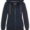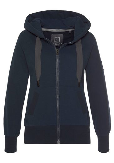 Die für die Elbsand Kapuzenjacken typischen Elemente wie die große Kapuze, breite Rippbündchen an den langen Ärmeln und am Saum und die beiden praktischen Eingrifftaschen vorn, finden sich auch hier, zusätzlich hat die Jacke tolle kontrastfarbene lange Tunnelzugbänder.