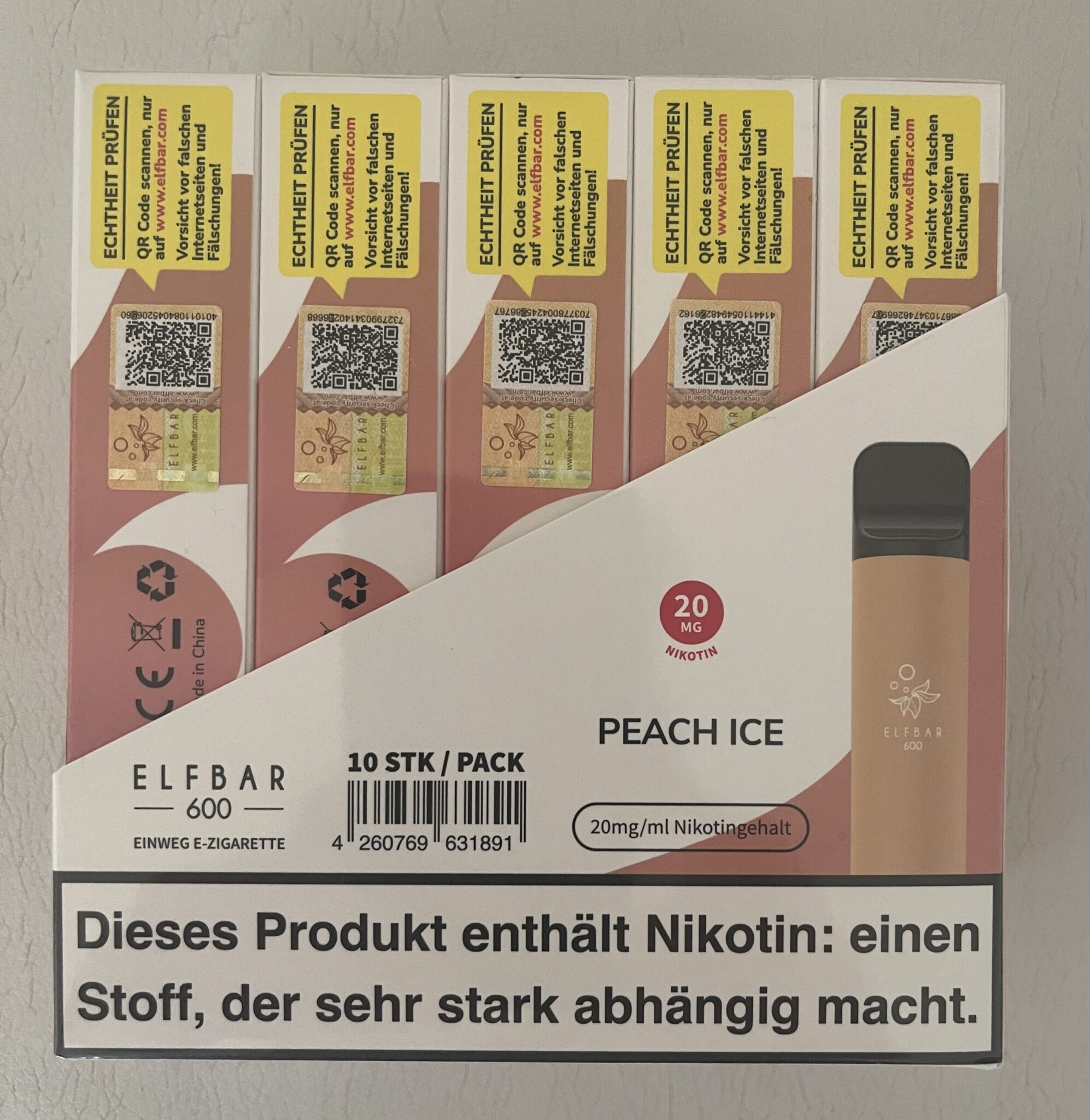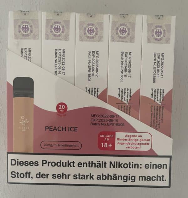 Jednorazowy e-papieros Elf Bar 600, Peach Ice, 2 ml, 20 mg/ml