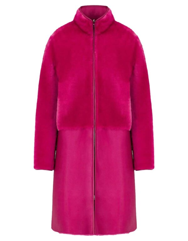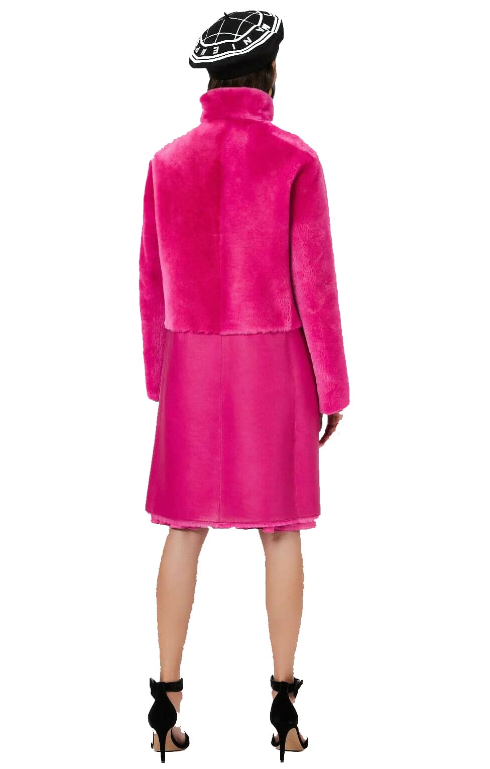 Ten płaszcz z jagnięcej skóry sam w sobie wystarczy, aby ubrać Cię w wyrafinowany, a jednocześnie praktyczny sposób. Dwustronny płaszcz można nosić z futrzaną stroną skierowaną na zewnątrz, aby uzyskać większy współczynnik przytulności, lub z futrzaną stroną skierowaną do wewnątrz, aby wyeksponować skórę nappa i podkreślić jej wyjątkowość.