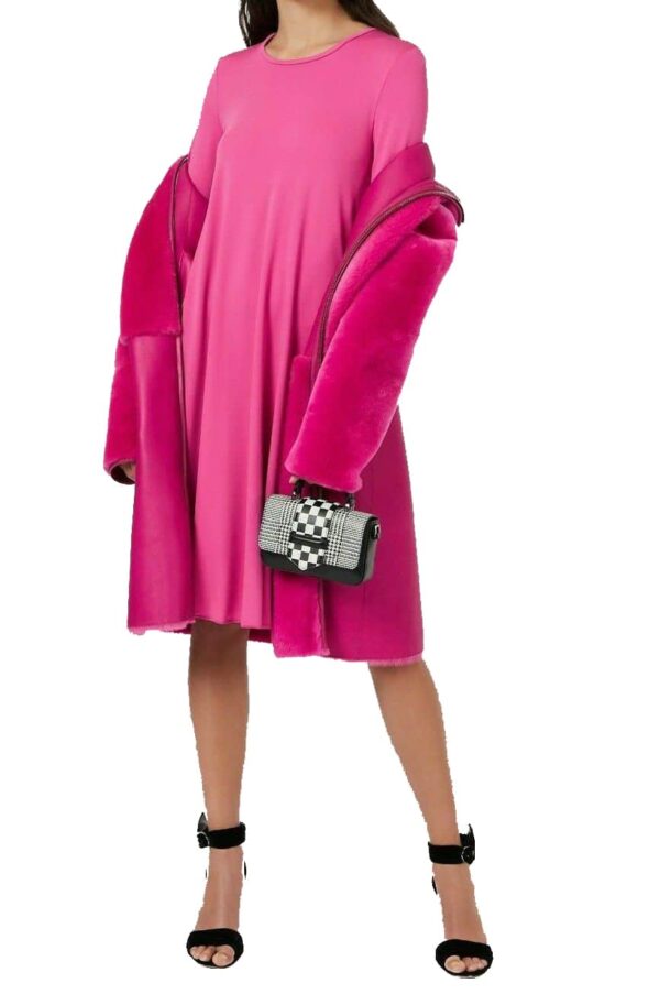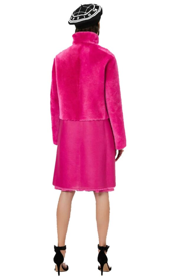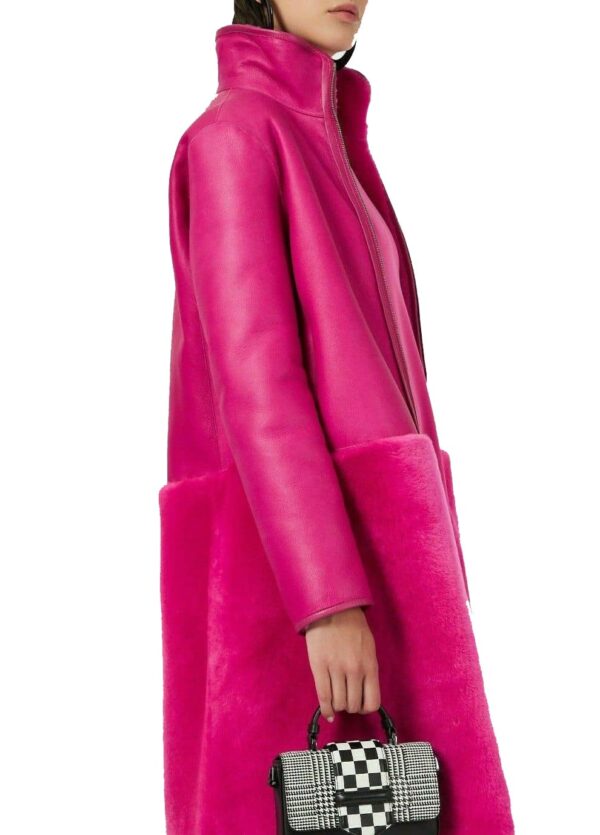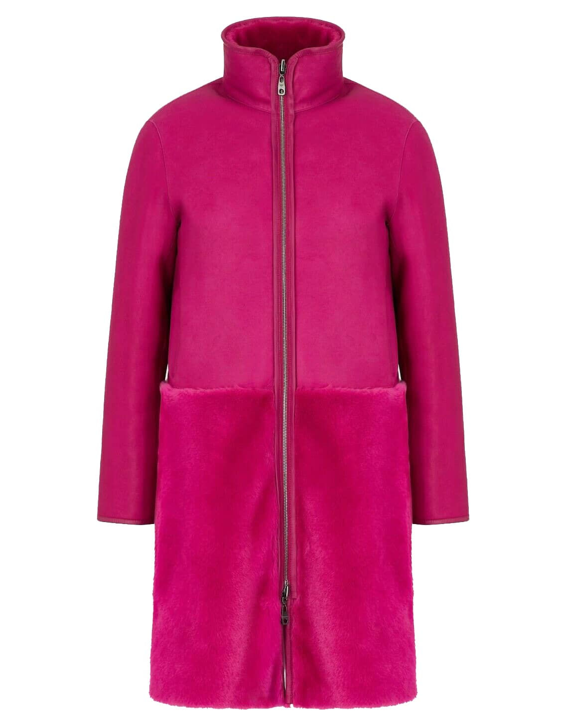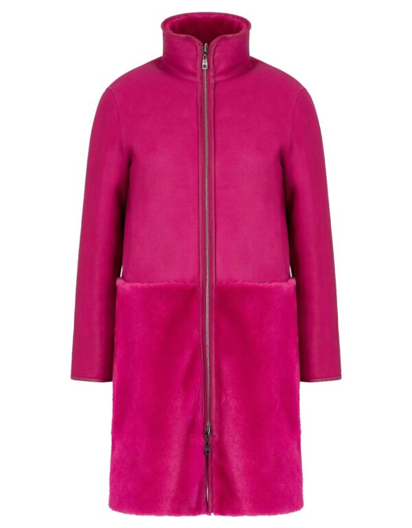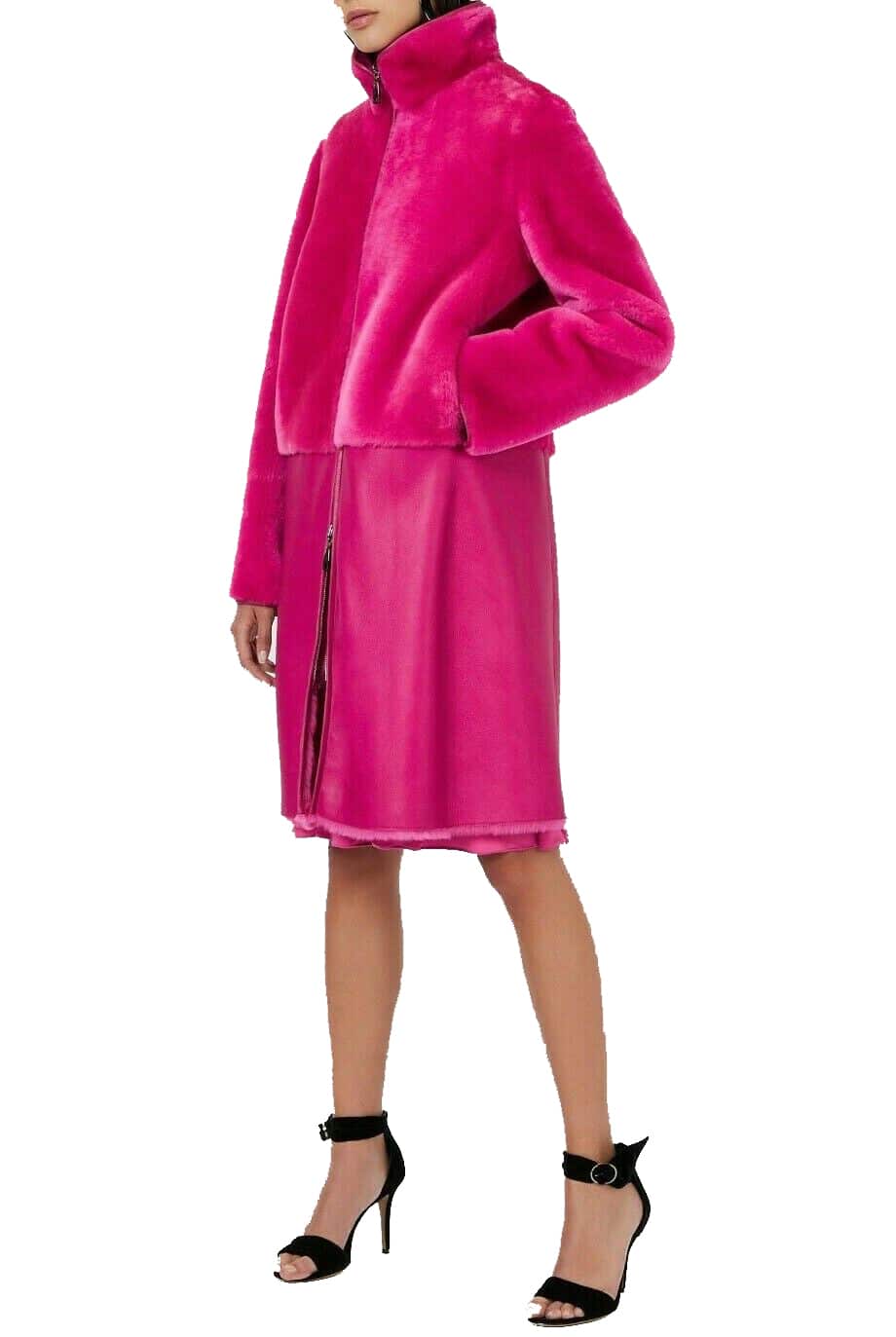 EMPORIO ARMANI dwustronny płaszcz ze skóry jagnięcej i skóry nappa, w kolorze fuksji, rozmiar 38