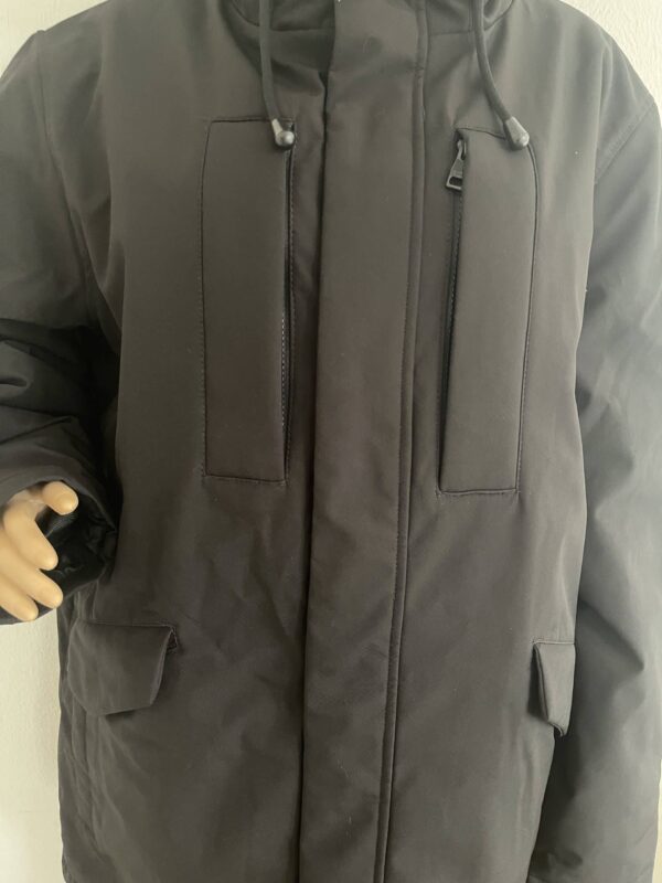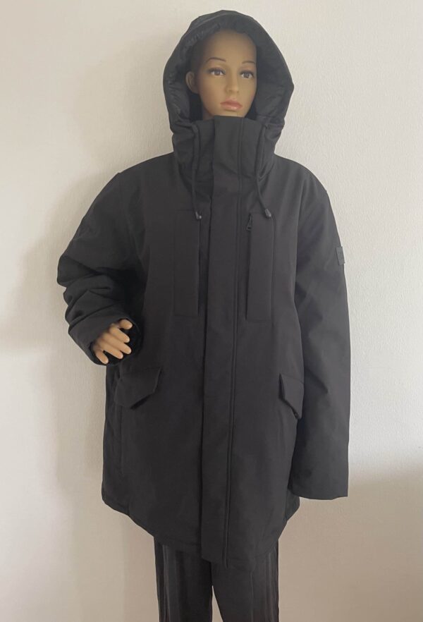 Die gefütterte Kapuze ist warm und schützend, die großen Patten-/Eingrifftaschen sind besonders praktisch.