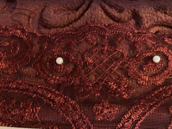 Francuska gipiura i perły są używane w kocowych spódnicach.
