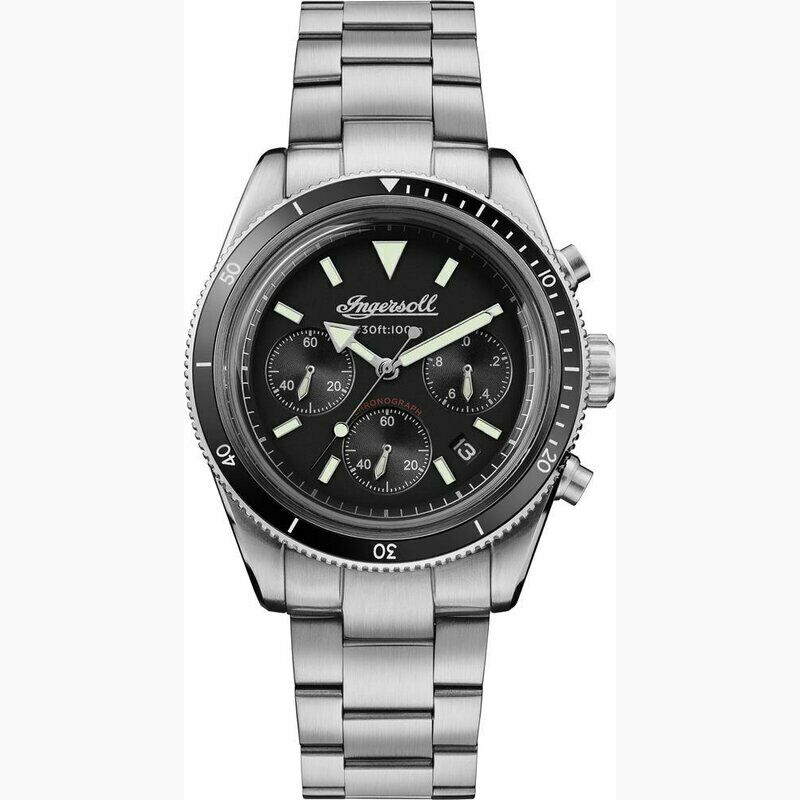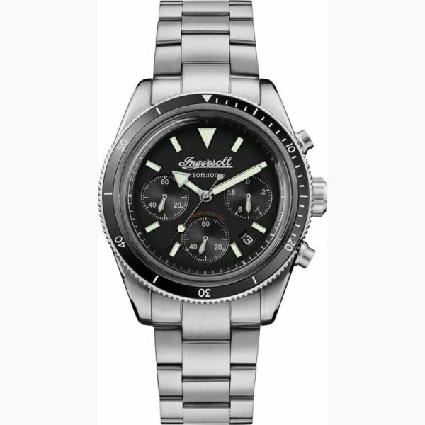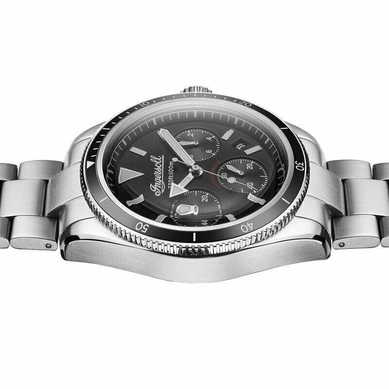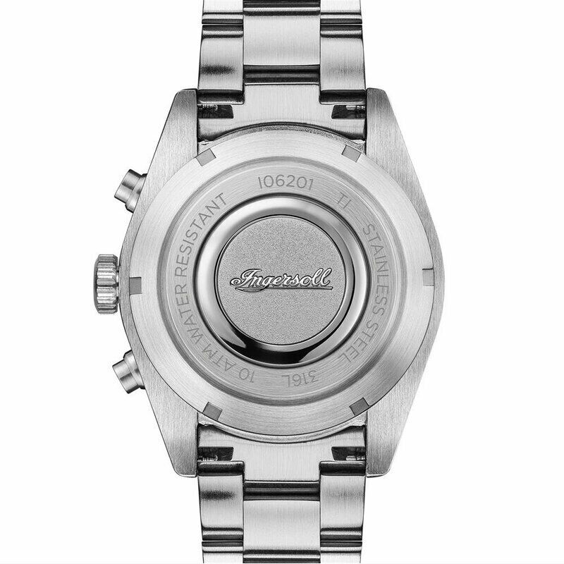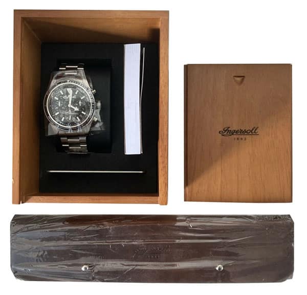 Męski zegarek Ingersoll ze srebrną bransoletą ze stali nierdzewnej / kopertą ze stali nierdzewnej / The Scovill I06201 w eleganckim drewnianym pudełku + skórzane etui