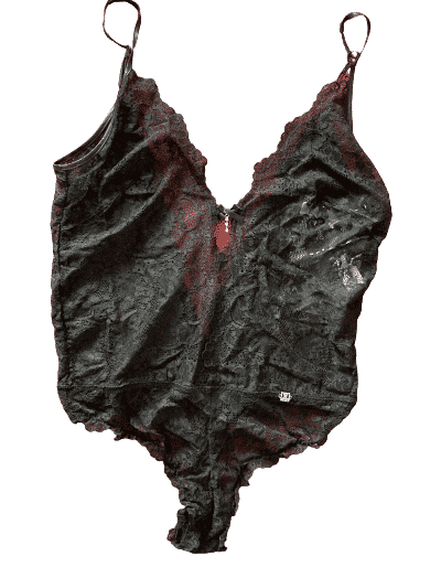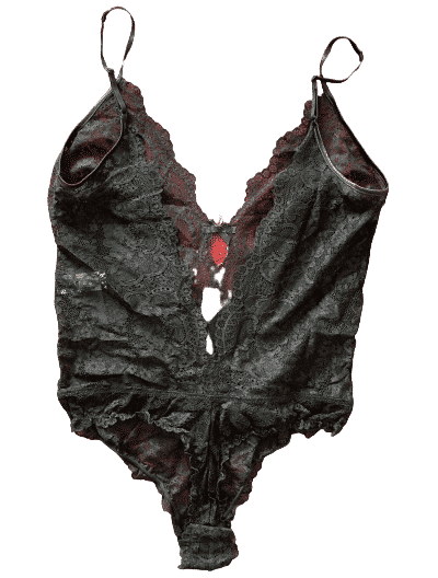 Der Body von Jette Joop ist aus zarter Spitze verarbeitet. Vorn ist ein Strasselement zu finden, hinten ein tiefer Rückenausschnitt.