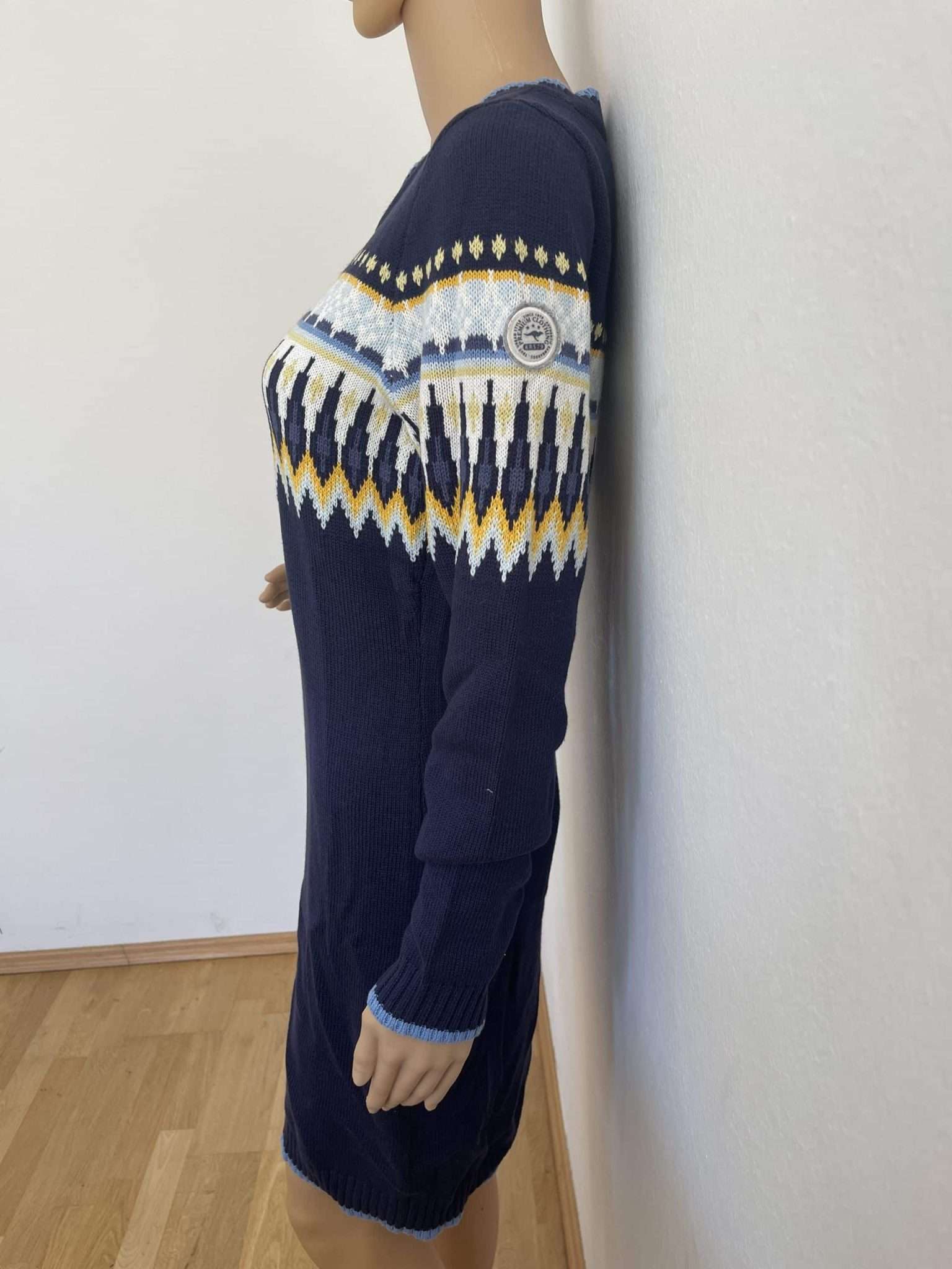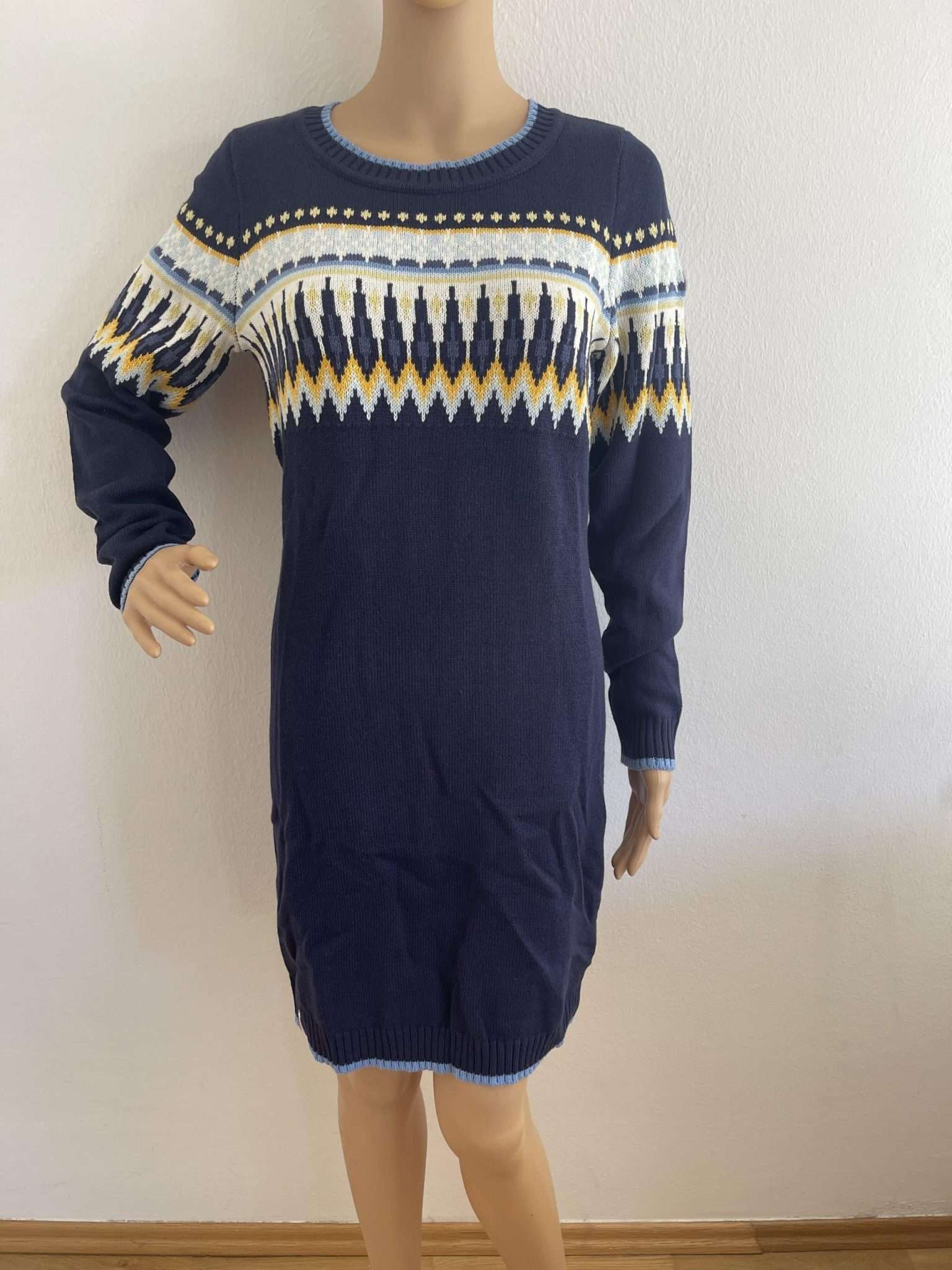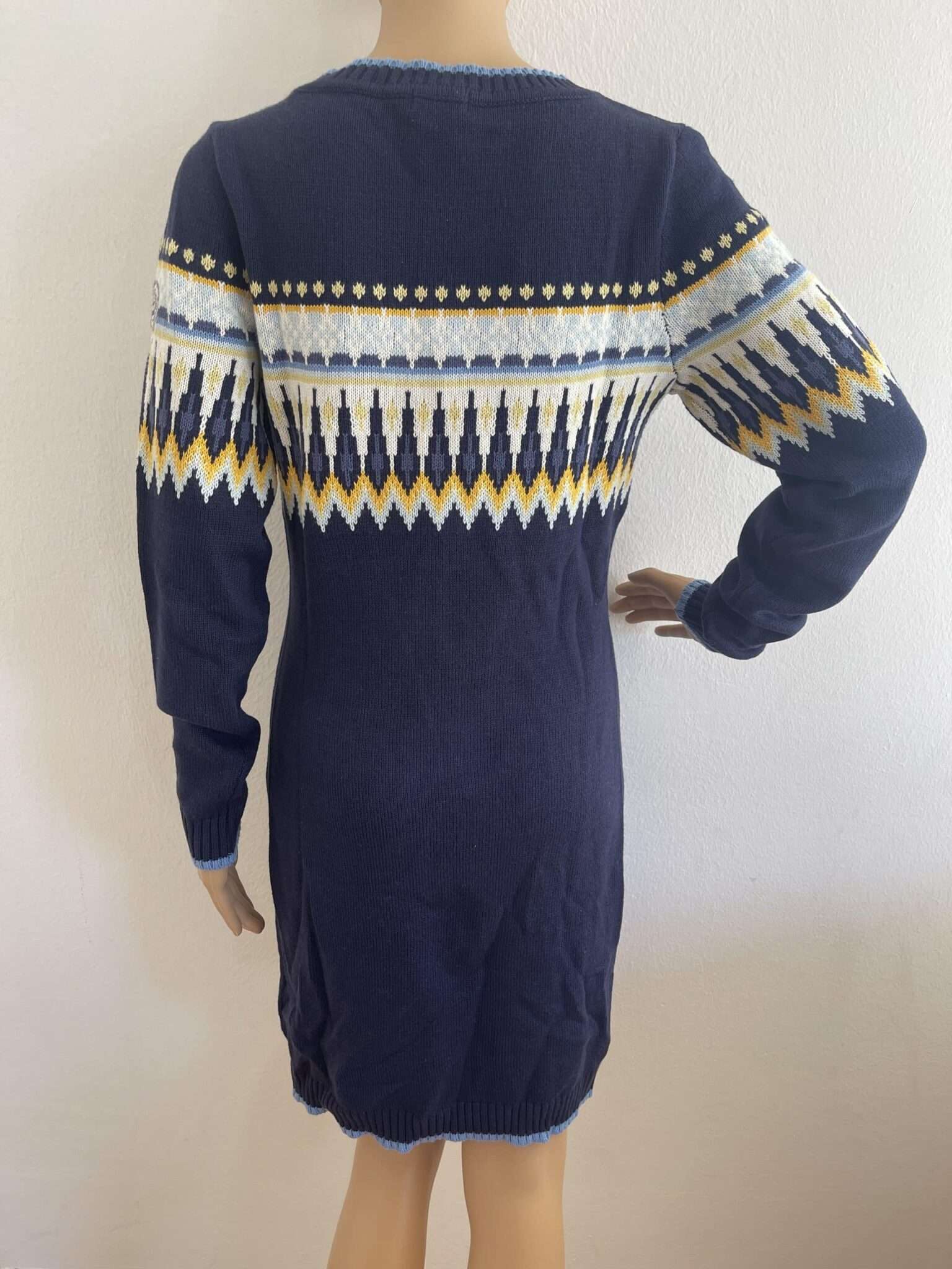 Abwechslungsreich bezaubert das langärmelige Kleid mit einem Mix aus Norwegermuster und einem feinen Zickzackmuster.