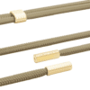 Ein rundes, geflochtenes Band in Taupe mit verstellbaren Klemmen und tauschbaren Endkappen in Hochglanz Gold, perfekt für eine XOUXOU Handyhülle.