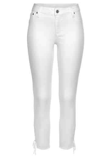 Wygodne, miękkie dżinsy w klasycznym stylu z 5 kieszeniami i sznurowanymi detalami na dole.