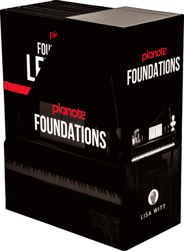 Te 10 książek w twardej oprawie obejmuje CAŁY program nauczania Pianote Foundations i poprowadzi Cię od nigdy wcześniej nie dotkniętego fortepianu do improwizacji jazzowej i tworzenia własnych pięknych progresji akordów i melodii.