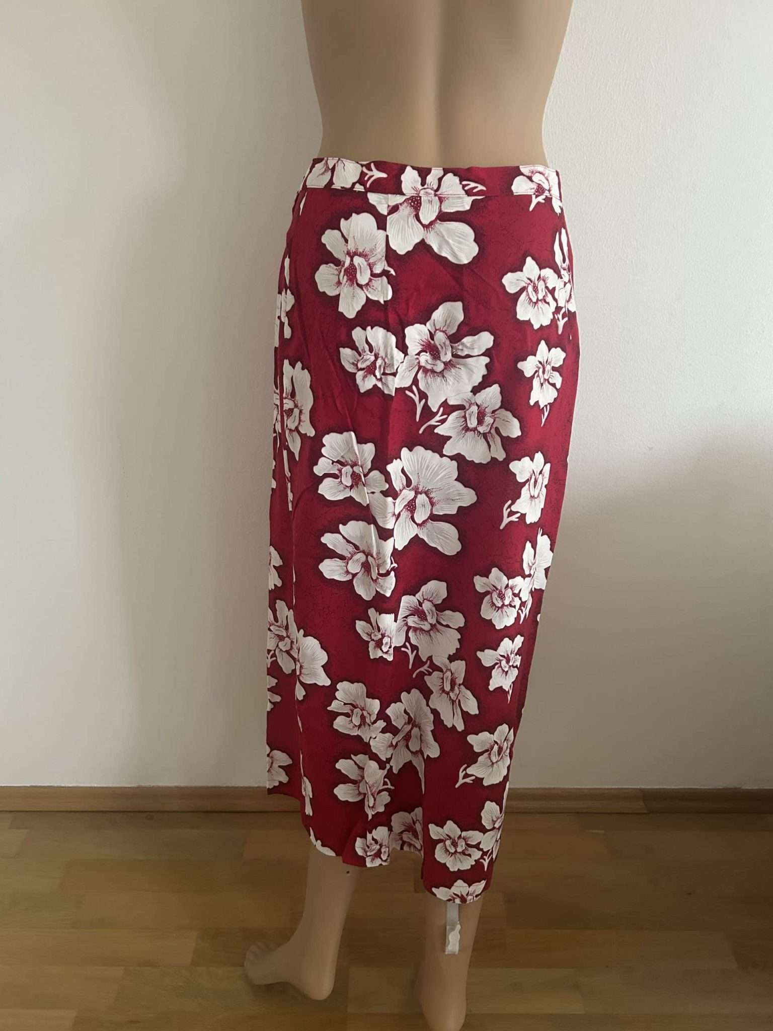 Dzięki tej kopertowej spódnicy zawsze będziesz dobrze ubrana. Ma modną długość midi, duży kwiatowy nadruk i jest wykonana z przyjemnie miękkiej wiskozy.