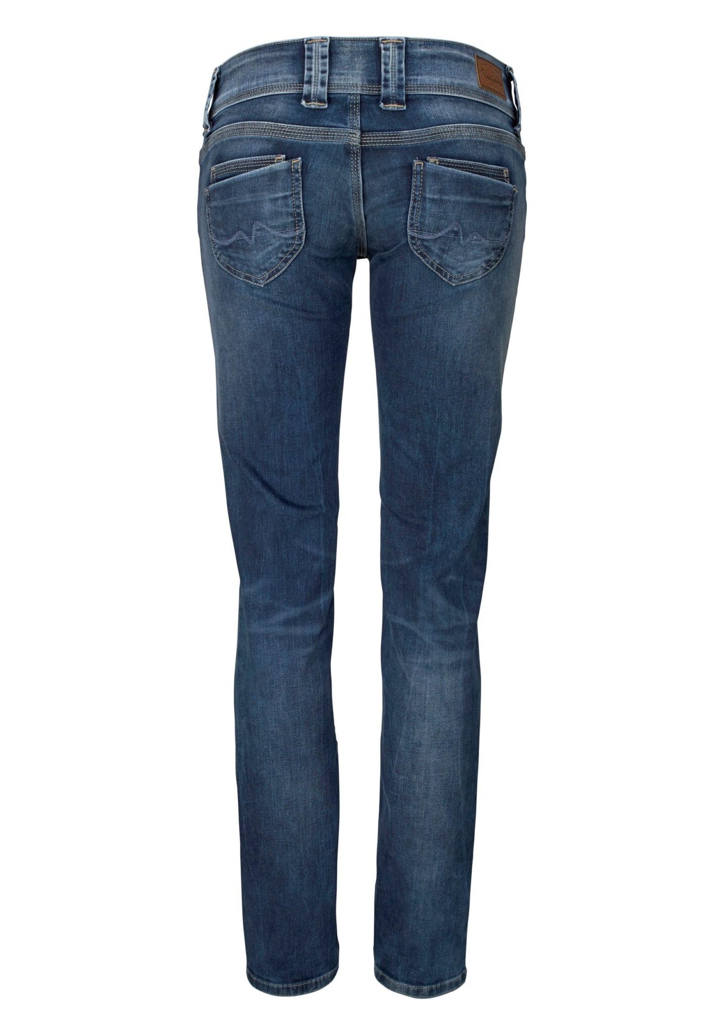 Prosty krój dżinsów jest lekko dopasowany, ale nie uciska szerszych ud i łydek.