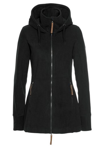 Der weiche Polarfleece mit Wärmerückhaltevermögen sowie atmungsaktiven und antistatischen Eigenschaften sorgt für den Feelgood-Faktor der Jacke von Polarino, die mit ihrer taillierten Passform und der großen Kapuze mit hohem Stehkragen als perfekte Basis für legere Outfitkombinationen dient.