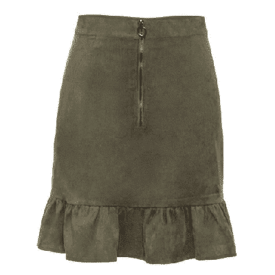 Dieser Cordrock mit Zipper setzt auf einen femininen Touch. Diesen erhält er mit einem charmant in Falten gelegten Volant am Saum. Einen weiteren Clou des körpernah geschnittenen Modells bildet der mittig verlaufende Reißverschluss mit Ring. Eine schlichte Bluse und farblich abgestimmte Pumps in Wildlederoptik runden diesen romantisch angehauchten Cordrock mit Zipper von BODYFLIRT modisch ab.