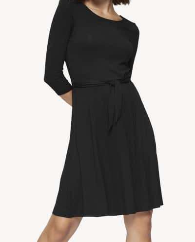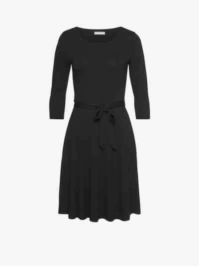 Sukienka z elastycznego dżerseju jest dopasowana i ma szlufki na pasek do wiązania, pasek nie jest dołączony.