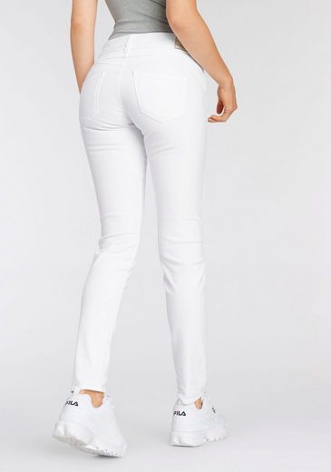 Podkreślające figurę damskie jeansy o wąskim kroju od Herrlicher. Bardzo dopasowany krój nogawek i niski stan. Wykończone markową metką. Model Gina Slim jest bardzo łatwy w pielęgnacji i wytrzymały.