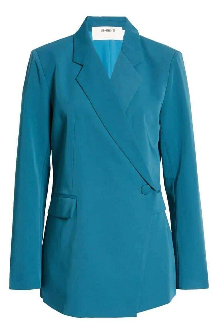 Tragen Sie diesen lebendigen Blazer mit sauberem Revers und einem außermittigen Knopfverschluss in kräftiger Farbe.