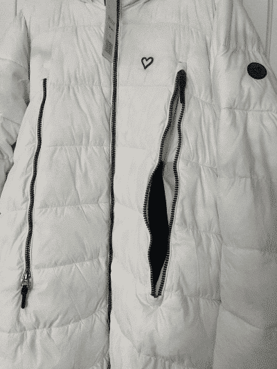 Er kommt mit Kapuze, Zweiwege-Reißverschluss und Wattierung.
