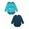 Baby Langarmbody (2er-Pack) Bio-Baumwolle, uni+gestreift, aqua-blau, Größe 80/86