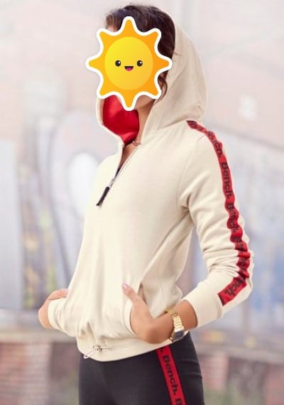 An heißen Tagen sorgt der Zipper am Dekolleté dafür, dass du nicht ins Schwitzen gerätst, und für eine trendige Optik sind die kontrastfarbene Kapuze und die seitlichen Logotapes da.