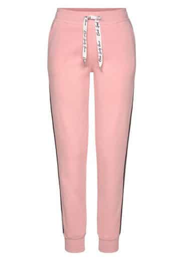 Seitliche Streifen und schmale Hosenbeine mit geripptem Abschluss lassen das Modell sportlich wirken.