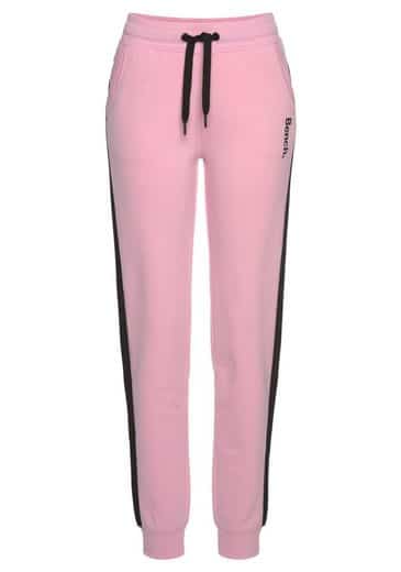 Bench. Sweathose mit Seitenstreifen und schmalem Bein, in Rosa-Schwarz, Größe 36/38
