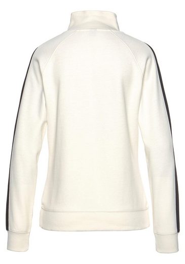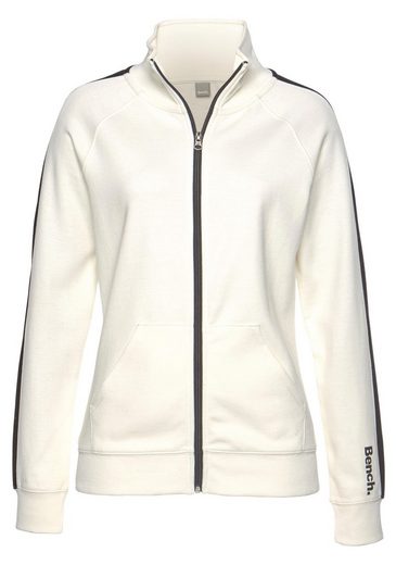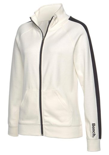 Bench. Sweatjacke mit Seitenstreifen und Stehkragen, in Ecru-Schwarz, Größe 32/34