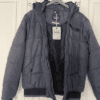 Sie besitzt eine große Kapuze, seitliche Taschen, eine Brust- und Innentasche, einen durchgehenden Reißverschluss und Ärmel mit Rippbündchen.