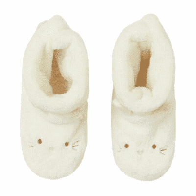 Weiche Hausschuhe aus Teddyfleece mit Stickereien und Applikationen. Weiche Antirutschsohle.