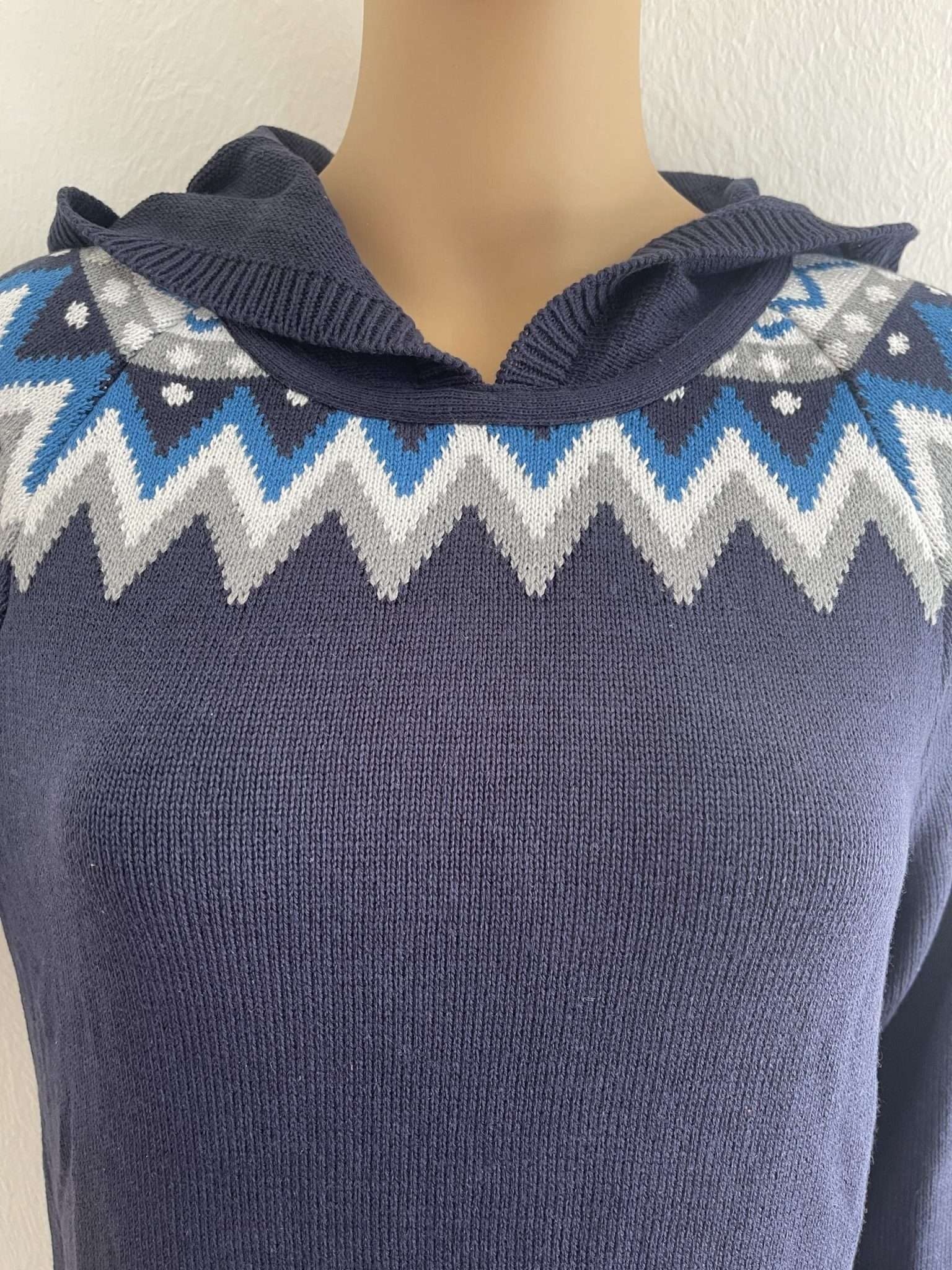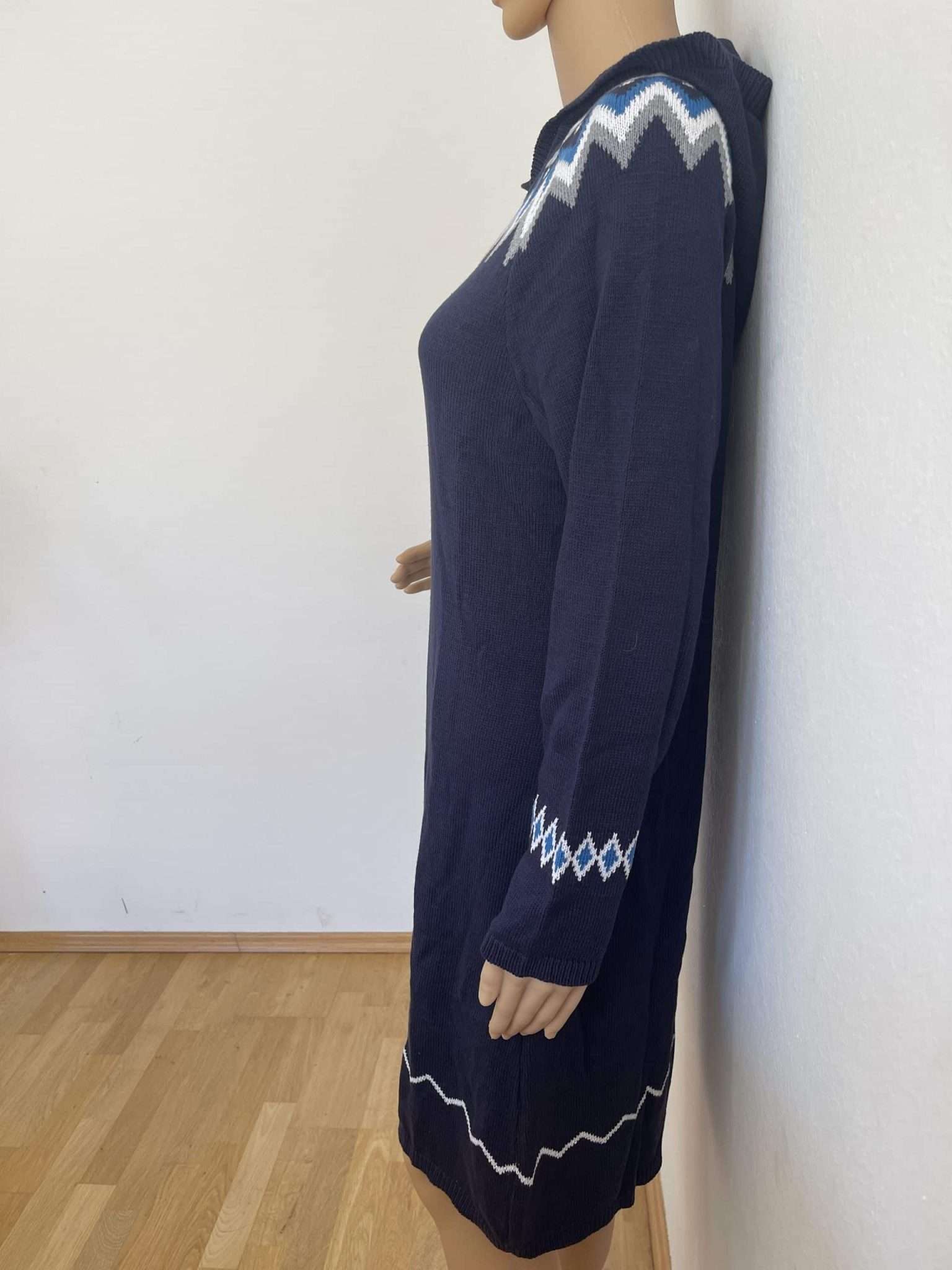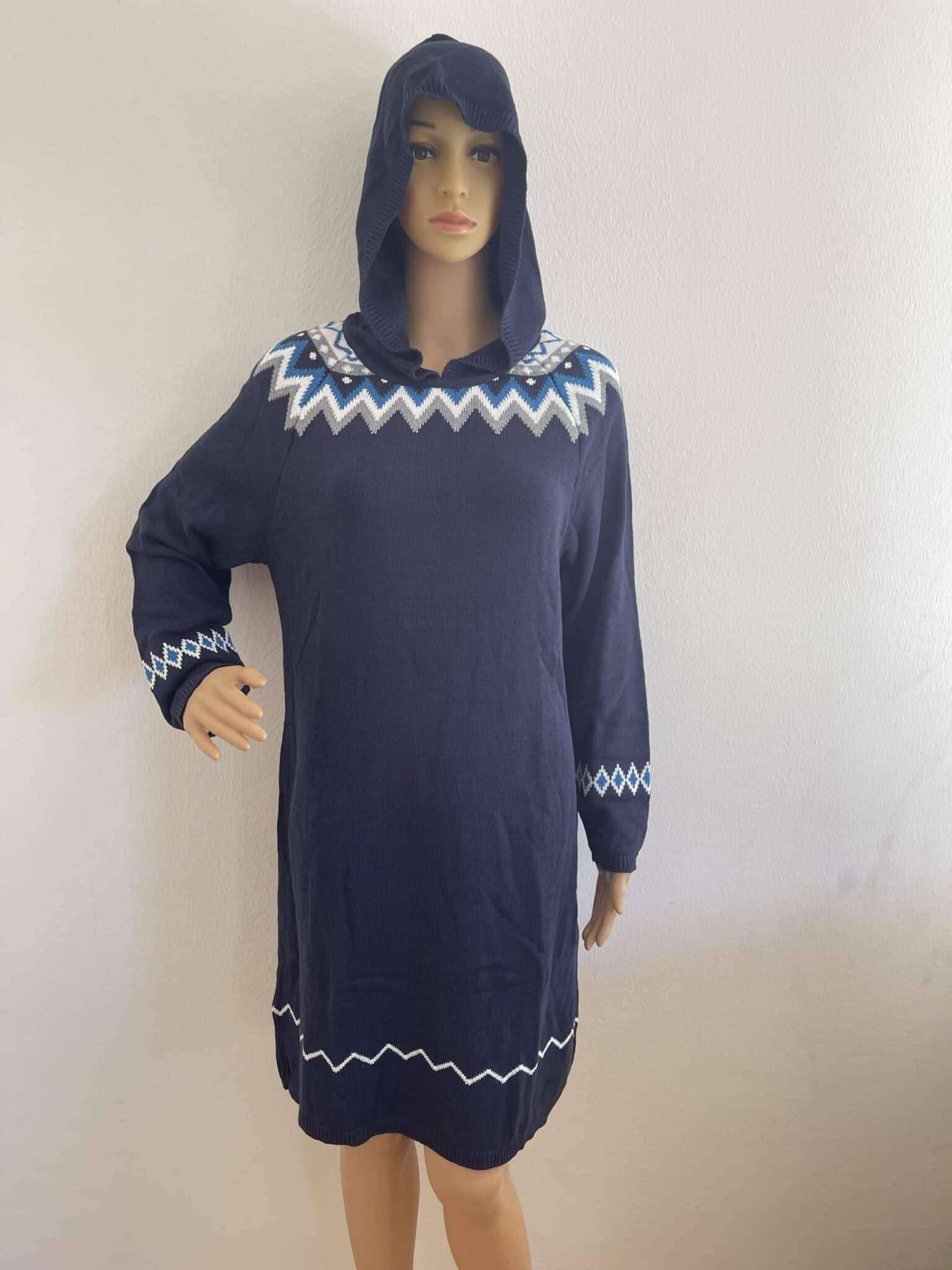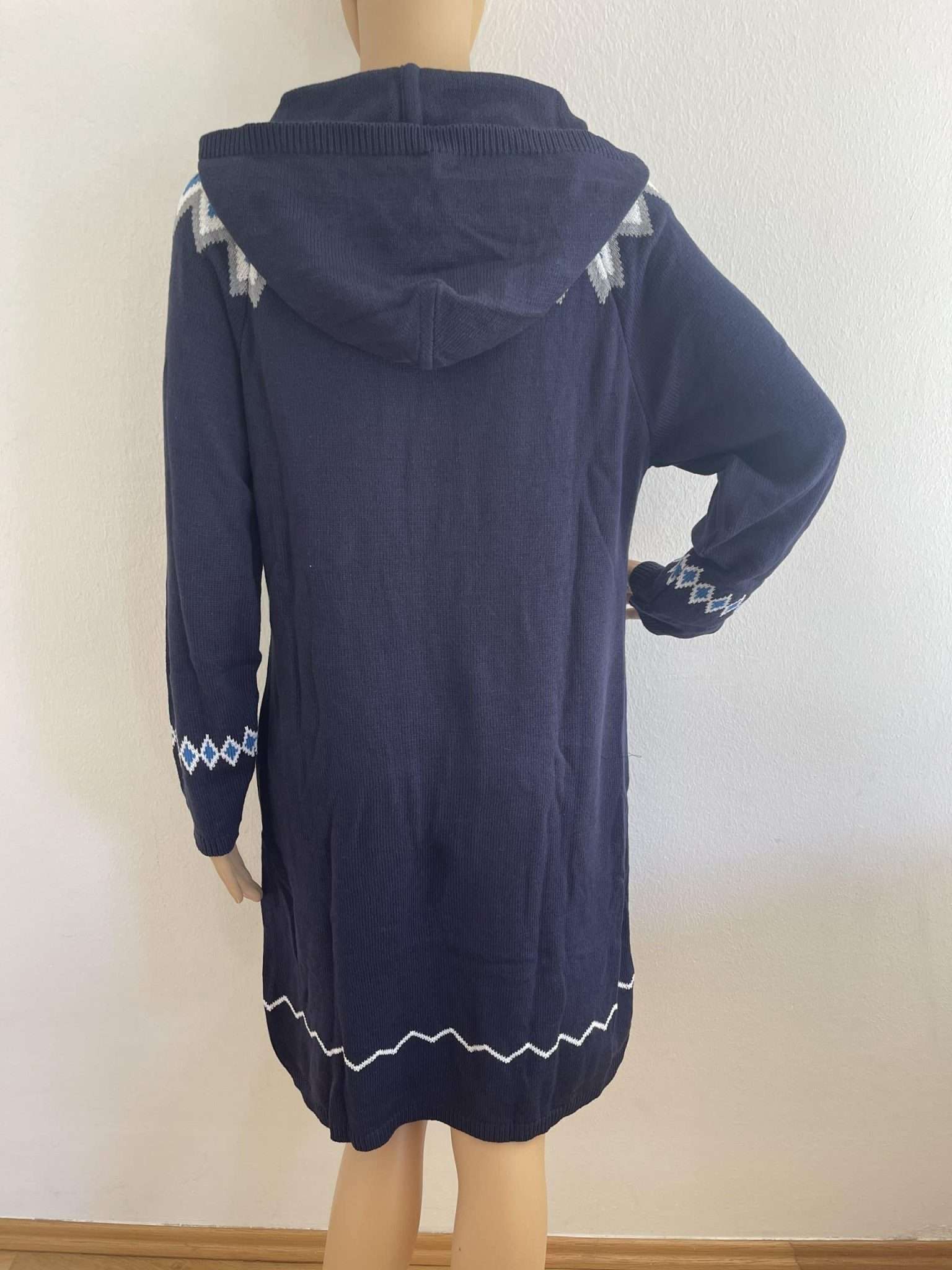 Eine grosse Kapuze ergänzt den sportlichen Look des Kleides.