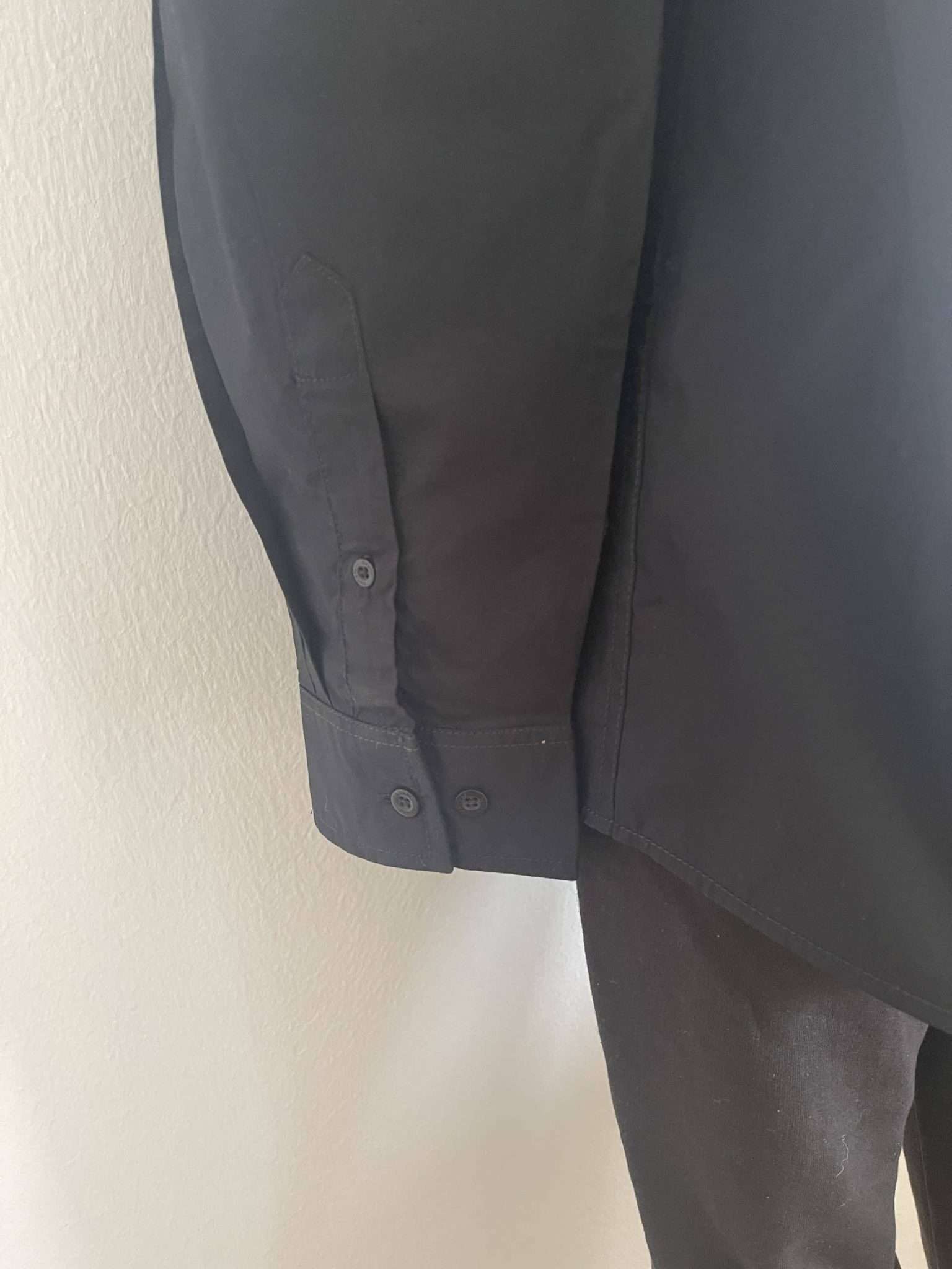 Die langen Ärmel enden in einer geknöpften Manschette.