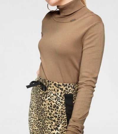 Hübsches Detail: das kleine Metalllabel am Rollkragen.