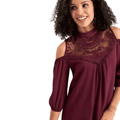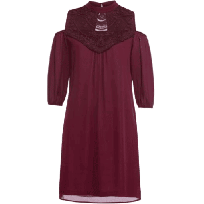 Cold-Shoulder-Kleid mit aufwendiger Spitzenarbeit, Ahornrot, Größe 38