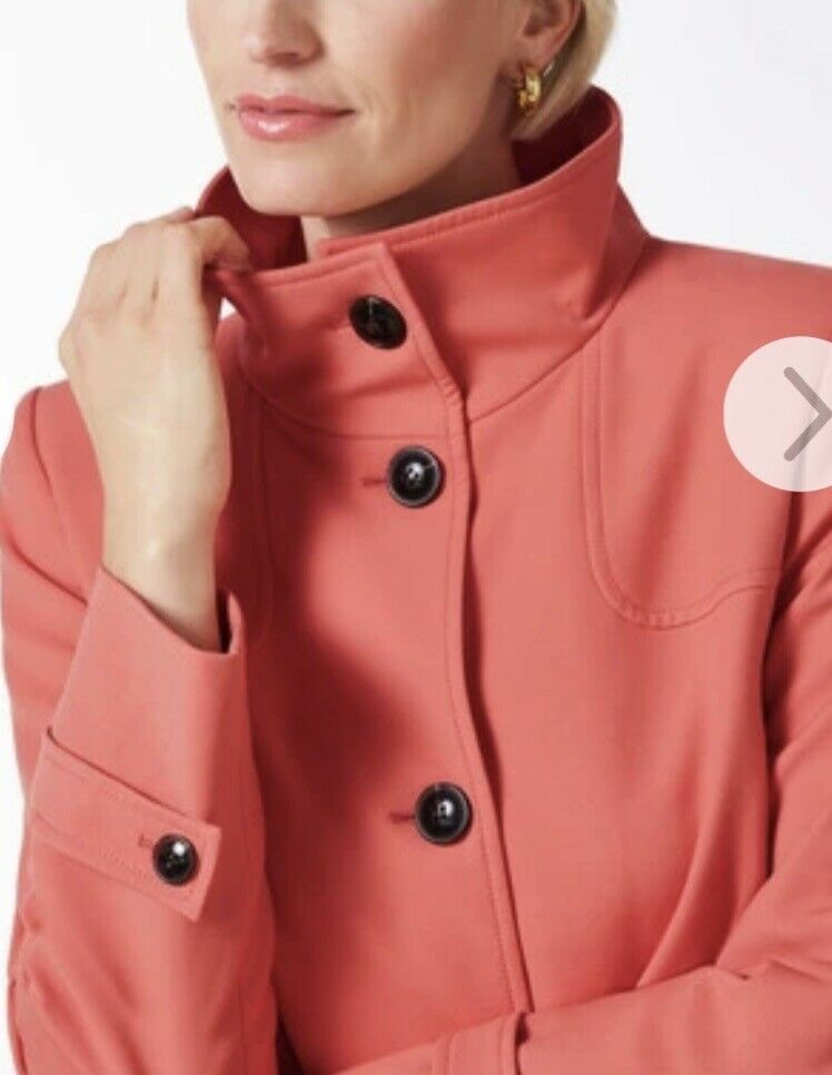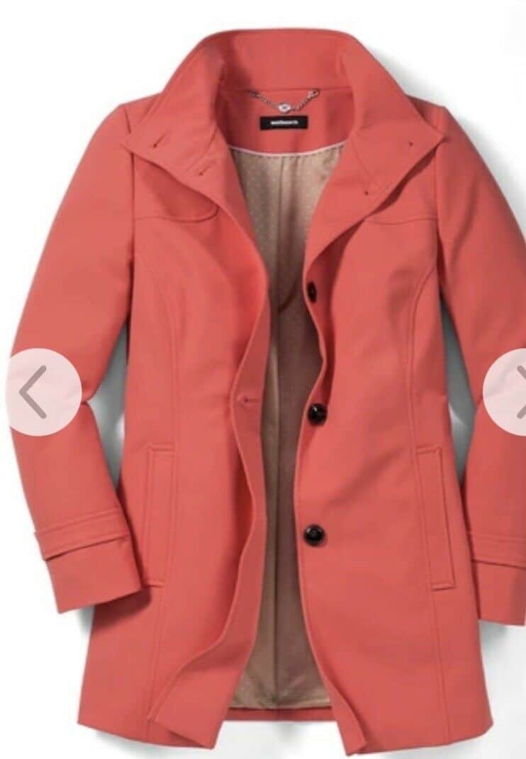 Sie hat die typischen Stilelemente des Trenchcoats: die Manteljacke mit großen Knöpfen, Koller, Ärmelriegeln, Stehkragen. Was natürlich auch sofort auffällt, ist der frische, aktuelle Melba-Ton. Aber dieses Modell hat noch mehr zu bieten! Denn auch der Stoff ist besonders; die Baumwollmischung ist bi-elastisch und bietet Ihnen daher ein Höchstmaß an Komfort. Dabei bleibt der Stoff weich, atmungsaktiv und ist knitterunempfindlich. Die Längsteilungsnähte sorgen für einen guten Sitz. Wenn das nicht Ihr liebster Begleiter für ansteigende Temperaturen wird.