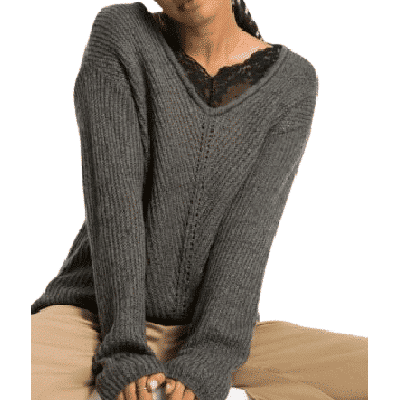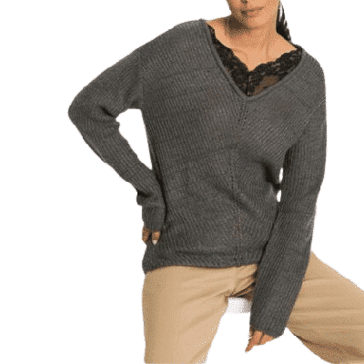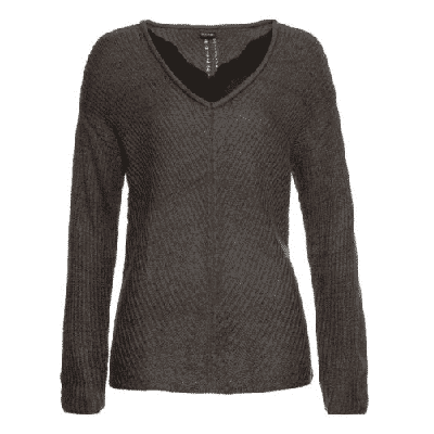 Geschmackvoller Pullover von BODYFLIRT. Der Pullover mit V-Ausschnitt ist mit einer eingefassten Spitze gearbeitet.