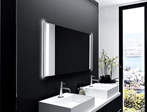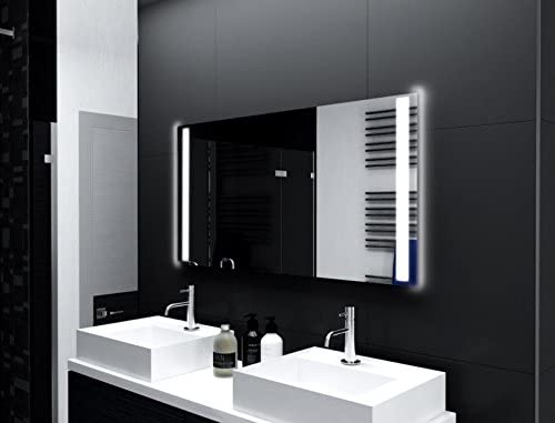 SARAR | Badspiegel Designo MA2110 mit LED-Beleuchtung eckiger Wandspiegel mit Licht Leuchtspiegel Badezimmer | 40x40cm [Energieklasse A++]