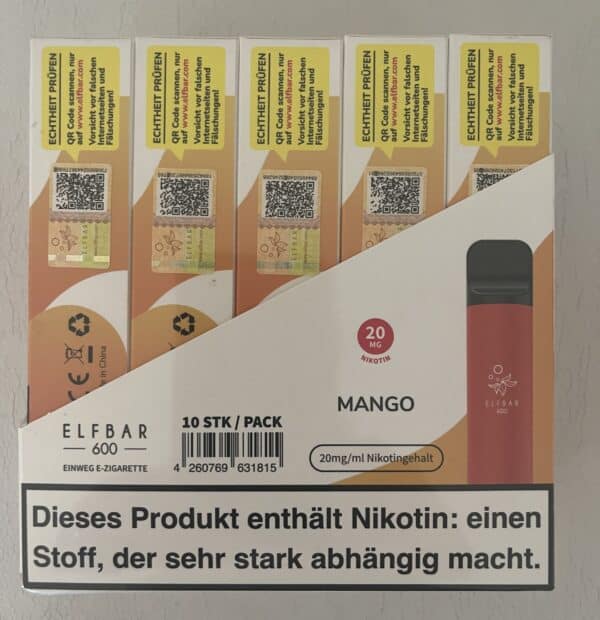 Elf Bar 600 Einweg E-Zigarette, Mango, 2ml, 20mg/ml