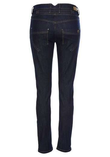 Die Used-Jeans gibt dir einen modernen Look mit offener Knopfleiste, authentischer Waschung und zahlreichen dekorativen Teilungsnähten und Kontrastteilen.