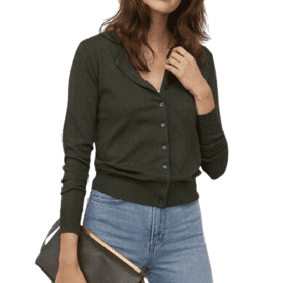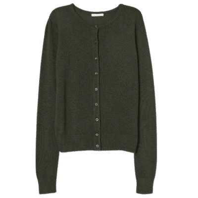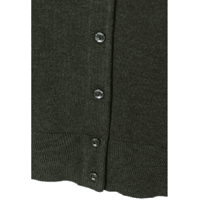 Geknöpfter Feinstrick-Cardigan mit Rundhalsausschnitt in Dunkelgrünmeliert, Größe S