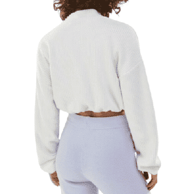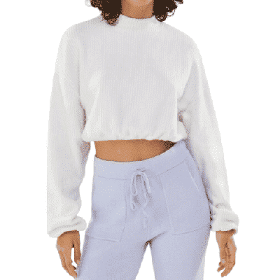Geripptes kurzes T-Shirt von Bershka, Langarm, elastisches Detail, Creme, Gr. L