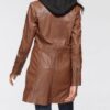 Figurbetonender Ledermantel in Biker-Optik mit abnehmbarer Kapuze aus weichem Jersey