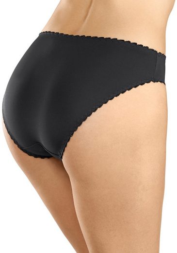 Der modische Damenslip überzeugt mit hohem Beinausschnitt und elastischer Mäusezähnchenborte an Taillen- und Beinausschnitten.