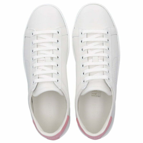 Das zartrosafarbene Lederdetail an der Ferse verleiht dem ansonsten komplett weißen Schuh einen Hauch von Farbe.
