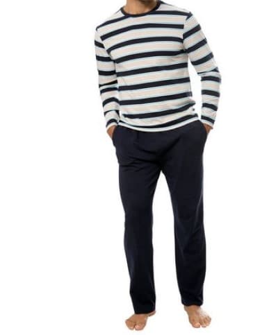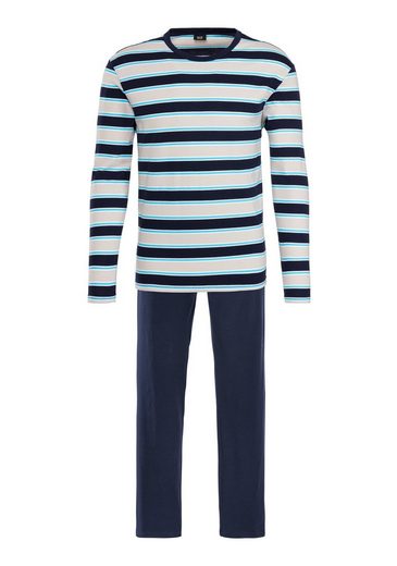 Der Pyjama von H.I.S besteht aus einem Langarm-Shirt und einer langen Schlafhose .